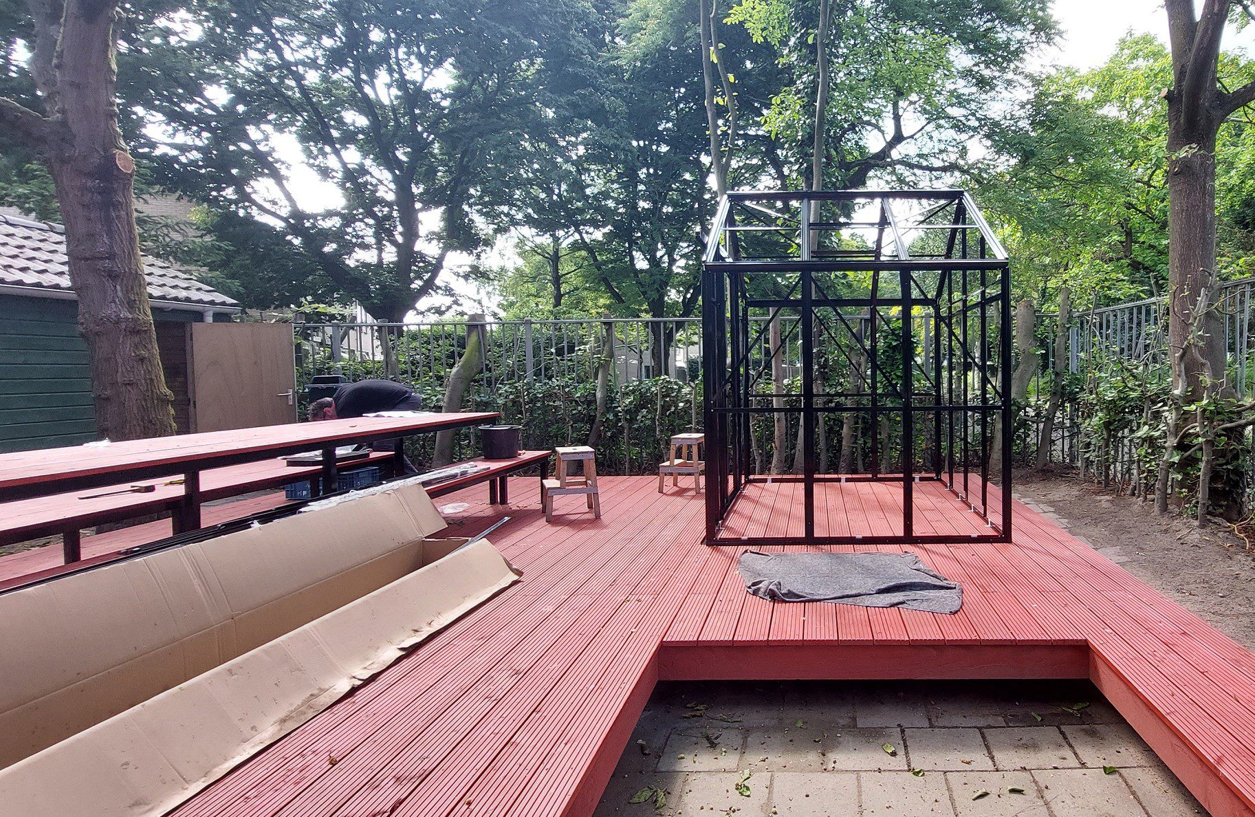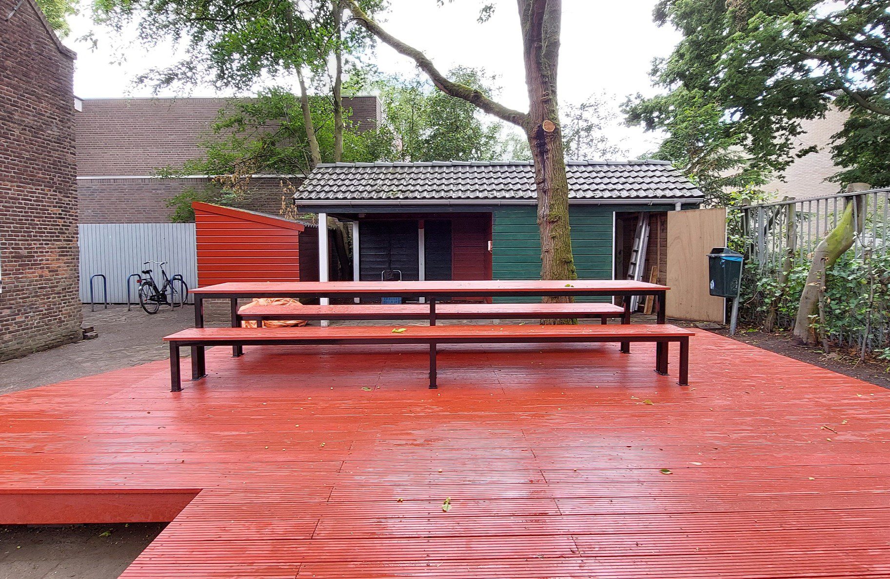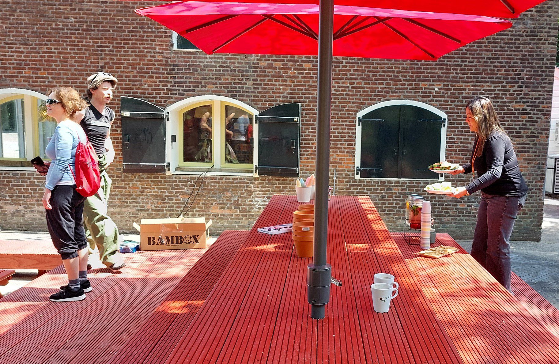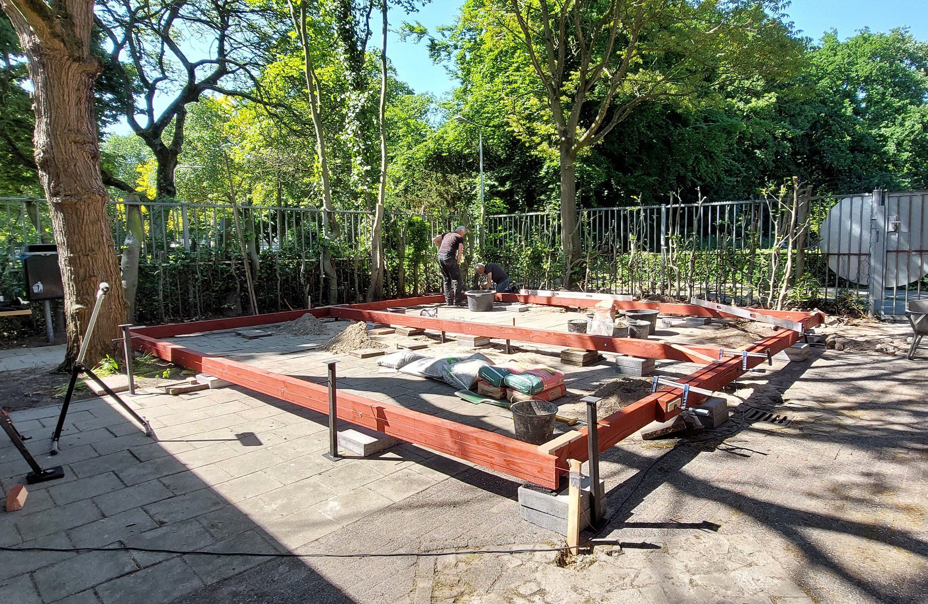 Nadat we in het voorjaar het ontwerp klaar hadden, besloten we samen met de Bibliotheek Midden Brabant, dat dit voor ons een mooi project was om ook zelf te gaan maken. Het was hard werken de afgelopen maand – veel sjouwen, kuilen graven, beton storten, stellen, schilderen en heel veel schroeven – maar het was het dubbel en dwars waard.