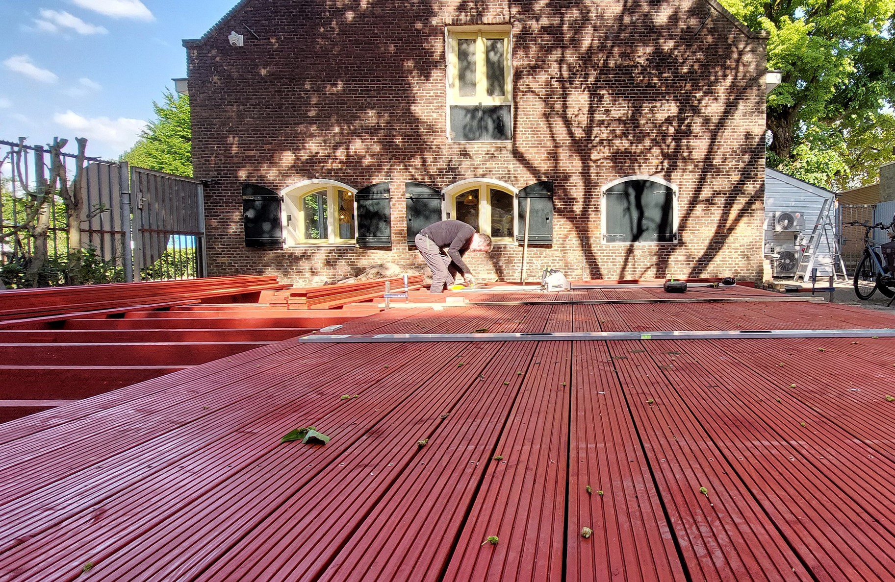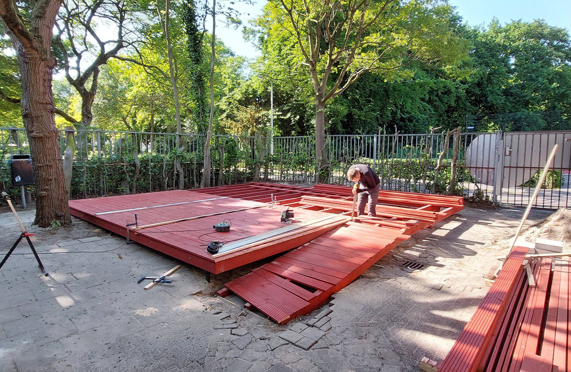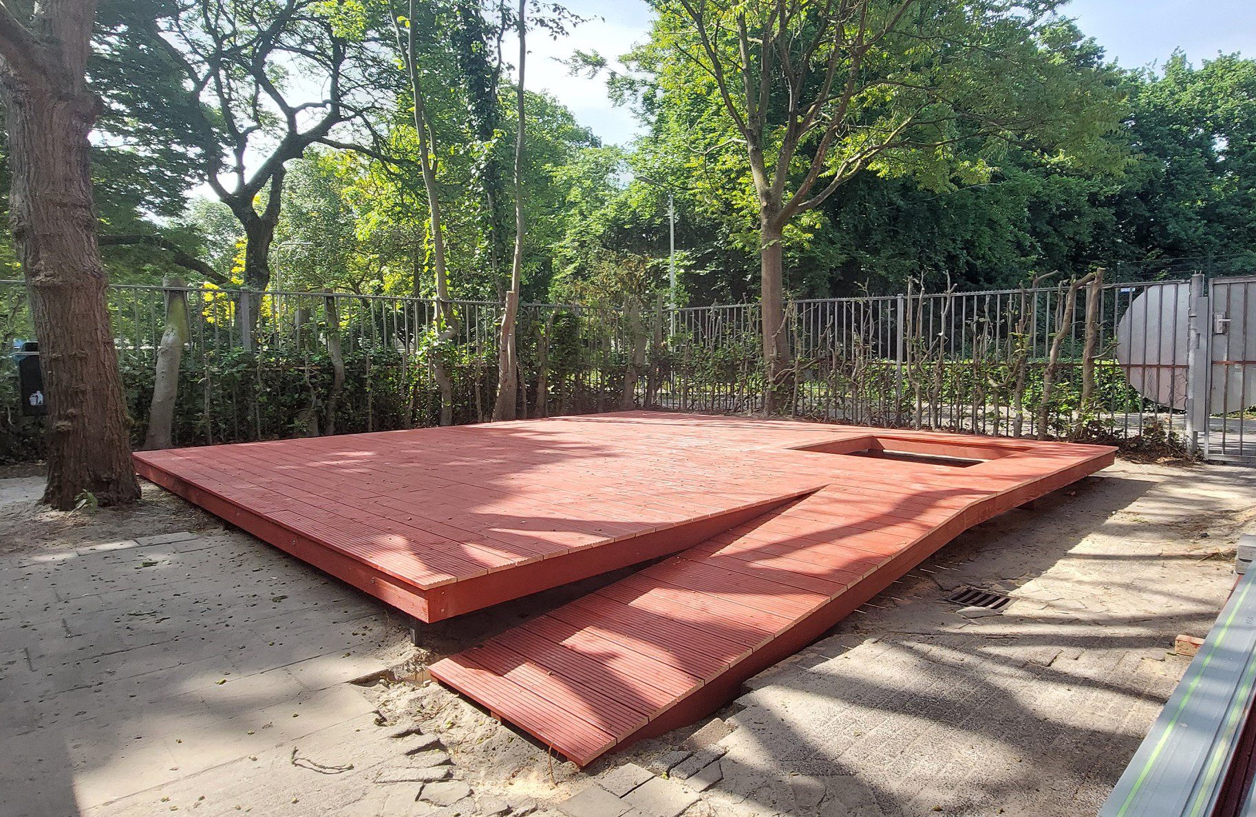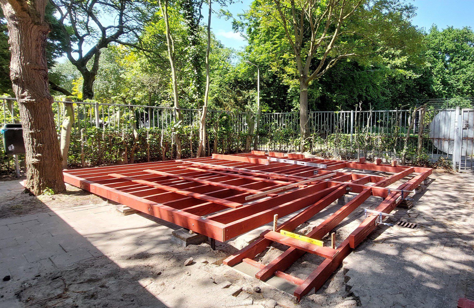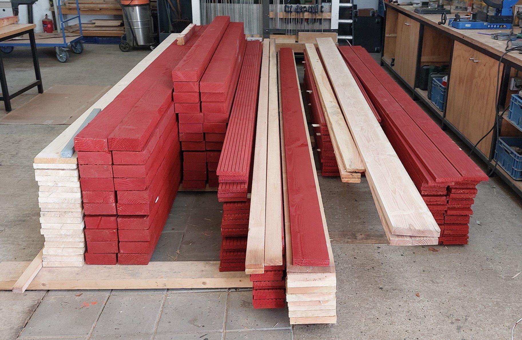 Nadat we in het voorjaar het ontwerp klaar hadden, besloten we samen met de Bibliotheek Midden Brabant, dat dit voor ons een mooi project was om ook zelf te gaan maken. Het was hard werken de afgelopen maand – veel sjouwen, kuilen graven, beton storten, stellen, schilderen en heel veel schroeven – maar het was het dubbel en dwars waard.