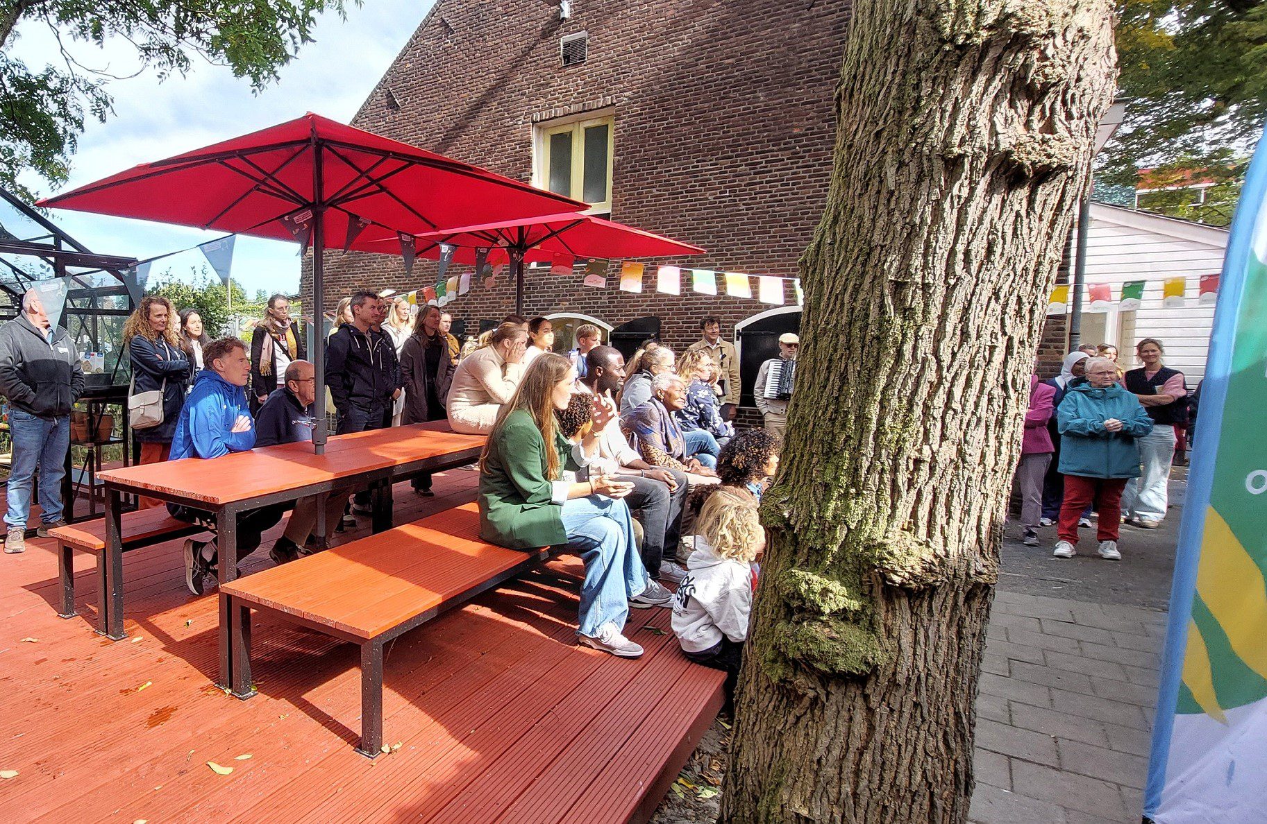 De boerderij heeft ook nog een eigen tuin, en zeg nou zelf, welke bibliotheek heeft nu een eigen tuin? Daar wilde de Bibliotheek Midden Brabant heel graag iets bijzonders mee doen. Zo ontstond het idee van de ‘Buitenbieb’: een stukje openluchtbibliotheek waar je buiten lekker met een boek kunt hangen, waar kinderen kunnen kennismaken met plantjes en beestjes en waar je in de buitenlucht allerlei activiteiten kunt organiseren.